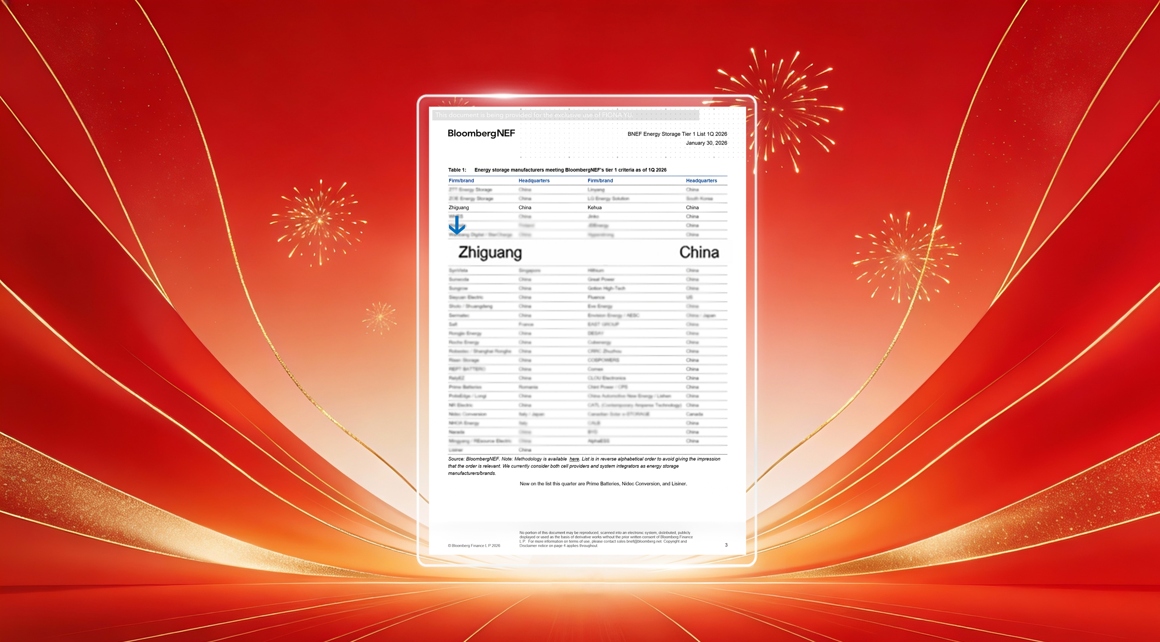 January 30, 2026 — BloombergNEF (BNEF) has released its Global Energy Storage Tier 1 list for Q1 2026, and Zhiguang Electric has once again been recognized among Tier 1 energy storage manufacturers, reaffirming the company’s strong competitiveness and growing influence in the global energy storage market.